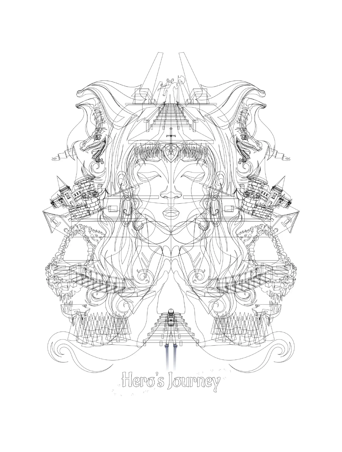 An old experimental piece I once made for prints. All vectors. Inspired by Joseph Campbell’s Hero’s Journey cycle.
