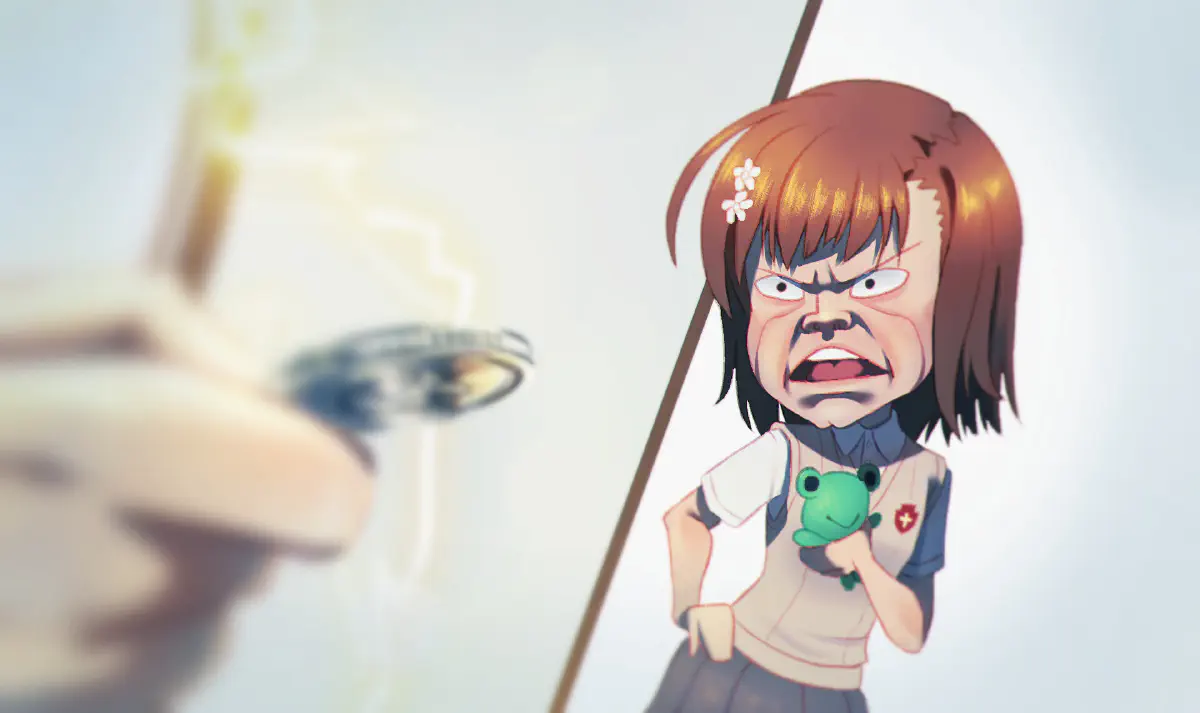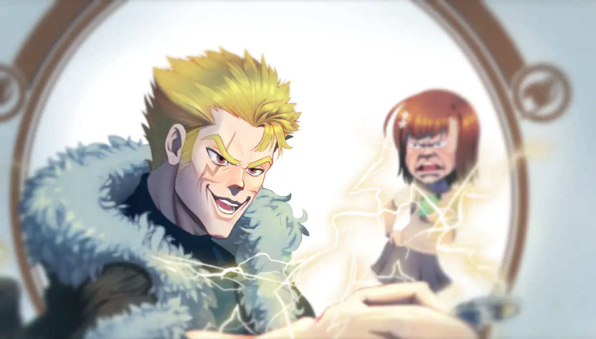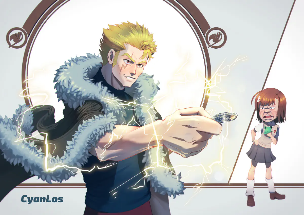 Practice (meme) painting of Laxus from “Fairy Tail” stealing the special move of Mikoto Misaka from “A Certain Scientific Railgun”.