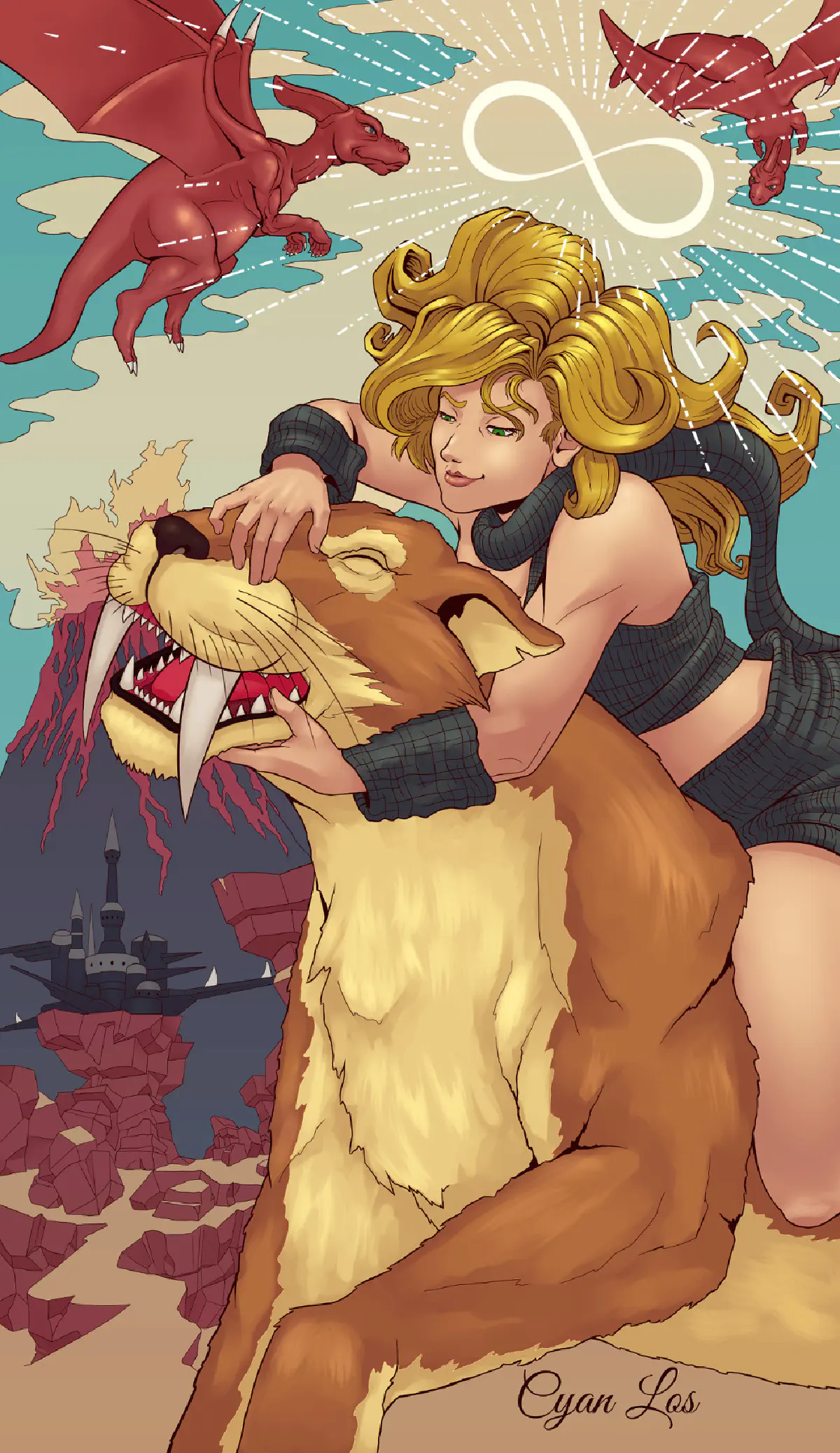 The first illustration – Card #08, Strength – among many in a personal Tarot project that me and few others have been undertaking lately, where I create the art for the symbolism devised by those who understand decks like the Rider-Waite enough for me to help visualize their ideas. These cards are also inspired by another classic story (Chrono Trigger) that has a cult-following but has largely been forgotten by the mainstream.